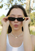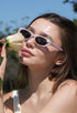 Playful yet chic, BUNNYBEAMS features a sleek black and pink cat-eye frame adorned with a pearl bunny charm with gold ears hanging from the lenses. Crafted from durable polycarbonate, these sunglasses offer full UV protection while adding a whimsical, standout touch to any outfit.